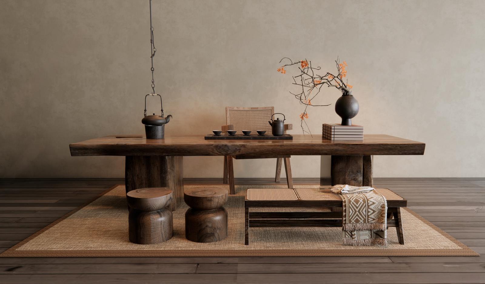 侘寂茶桌椅组合 花瓶摆件 ID:189046