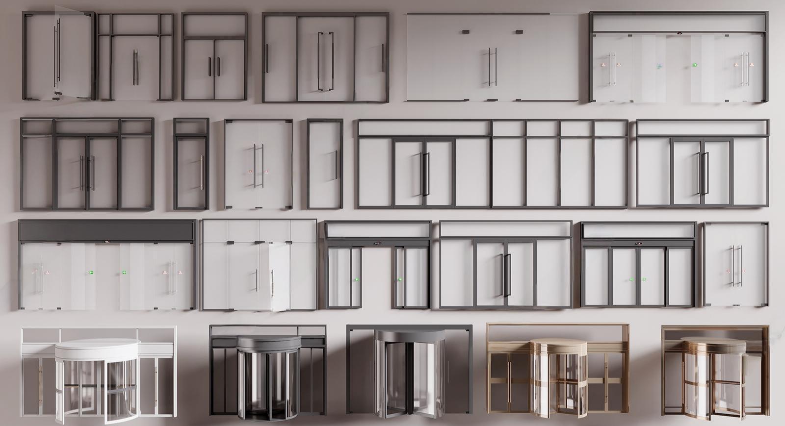 现代玻璃门组合 旋转 单开 电动感应 ID:189043