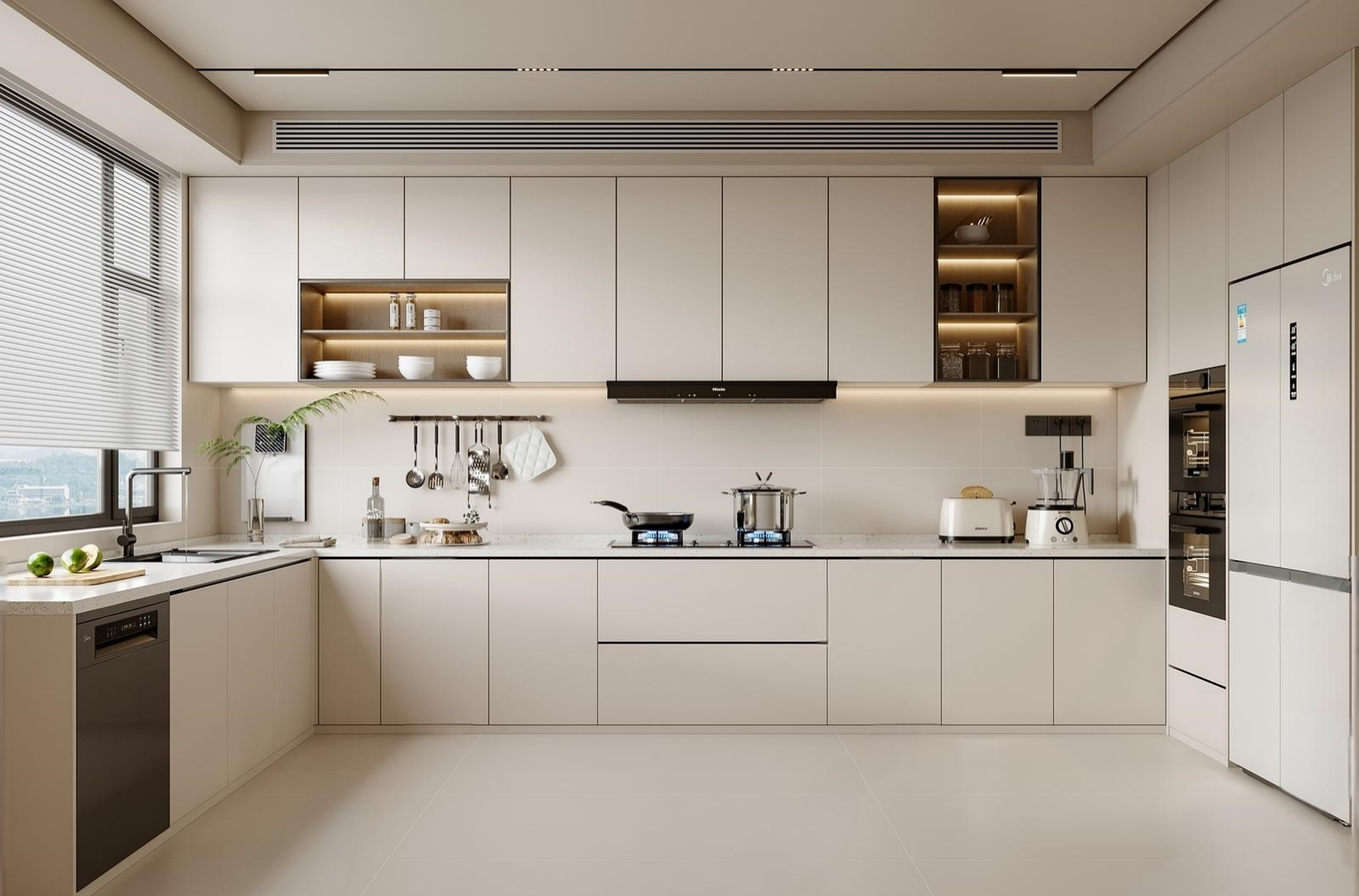 现代奶油风厨房 ID:189039