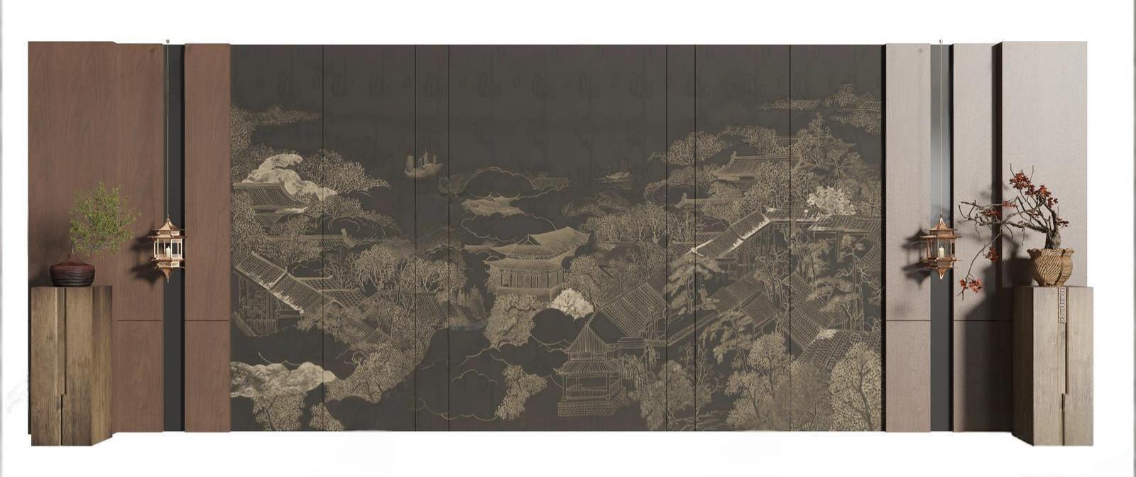 新中式沙发背景墙 ID:189029