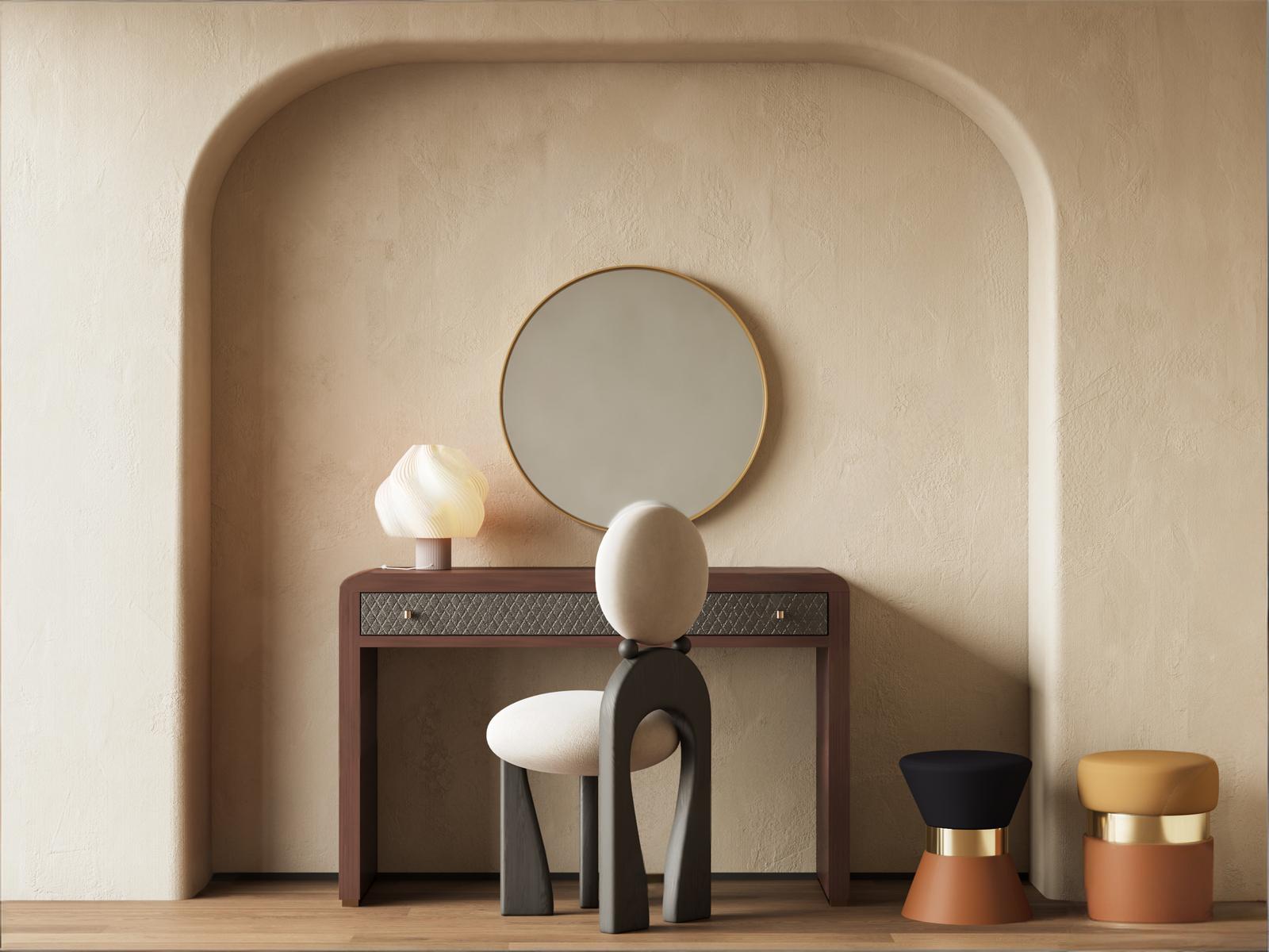 现代中古梳妆台 妆台妆凳组合 化妆镜 梳妆台凳子 ID:191251