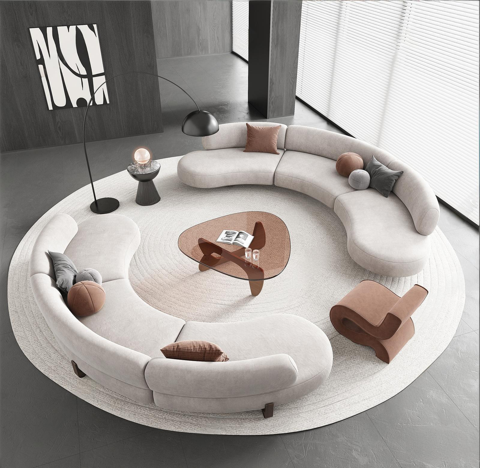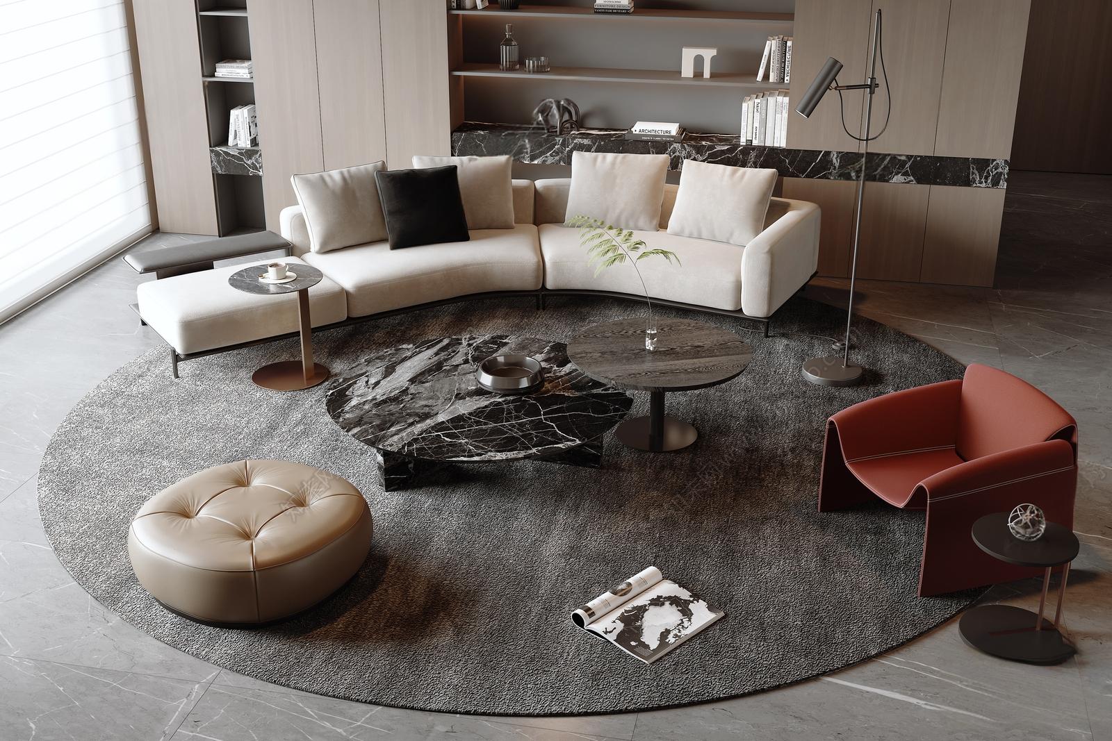 现代弧形沙发茶几组合 独凳 边几 落地灯 摆件 ID:191232