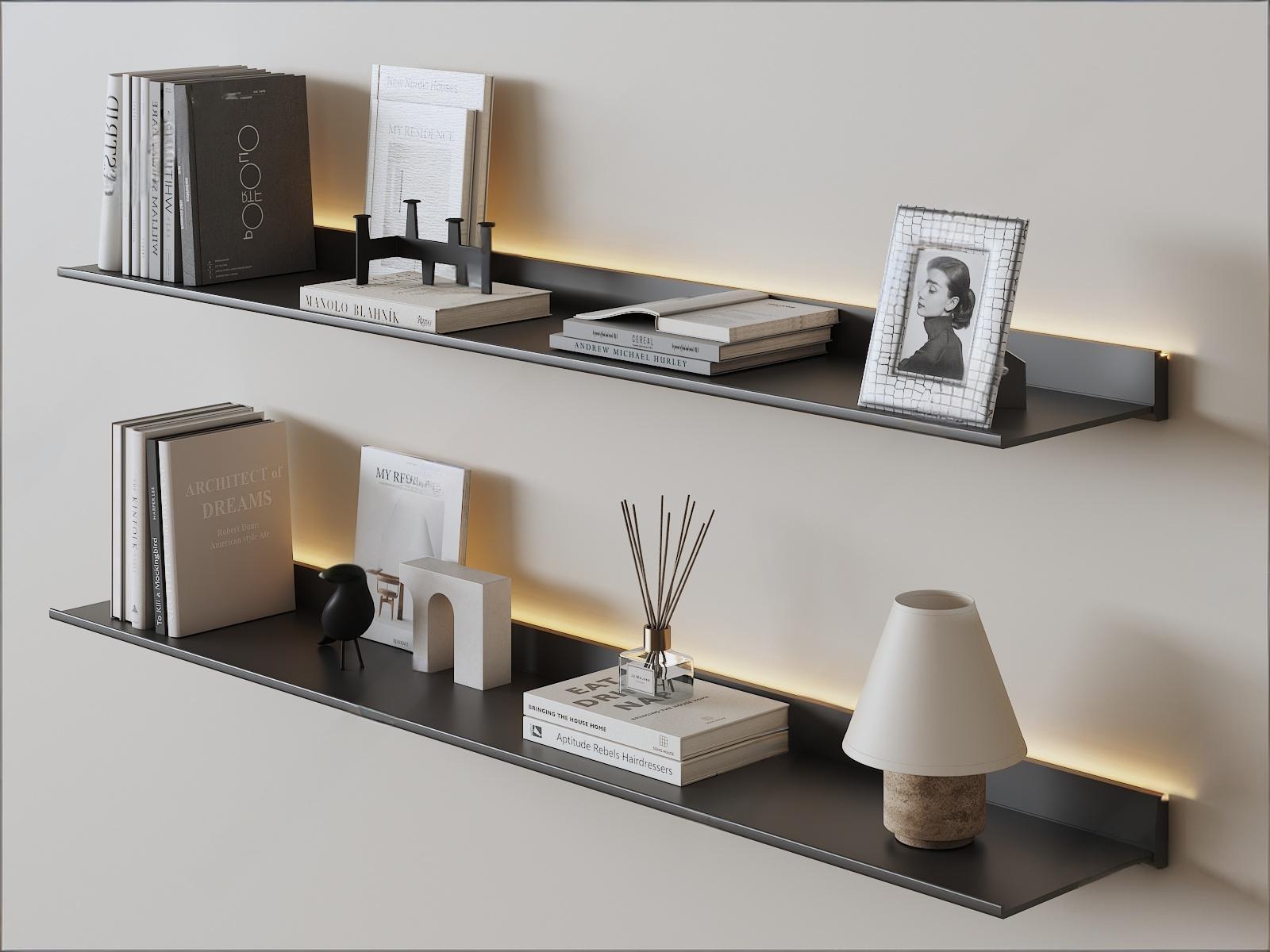 现代铝合金创意简约书架 简约金属发光层板 置物架 ID:191238