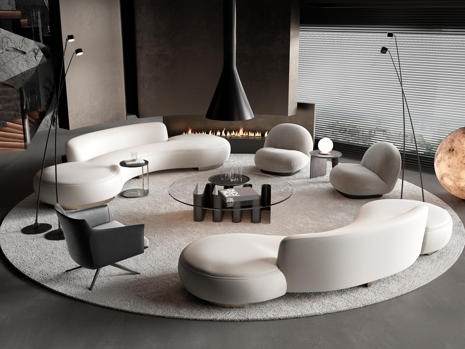 现代别墅客厅 罗奇堡泡泡沙发 落地灯 ID:191233