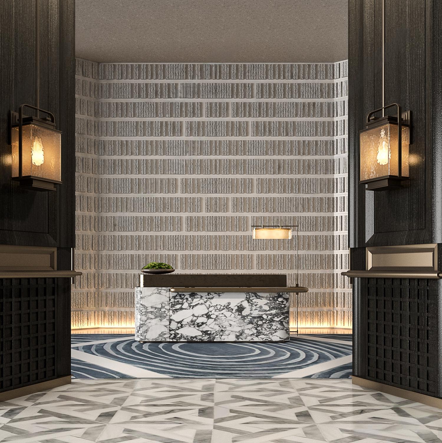现代轻奢大厅 现代前台 屏风 ID:191217