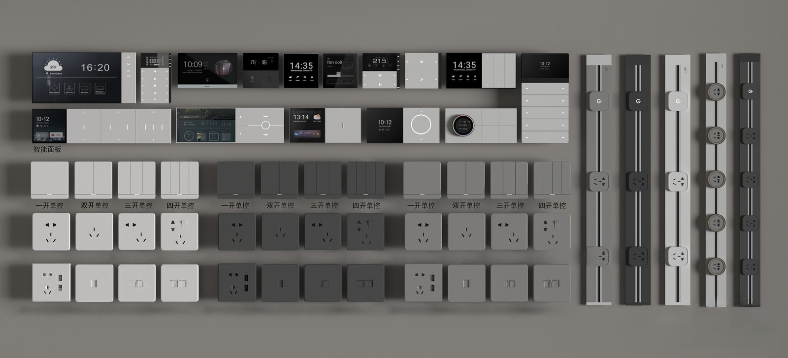 现代开关插座 轨道插座 智能面板 功能面板 ID:192473