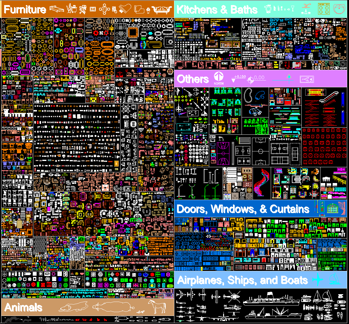 软装类家具平立面带参考图CAD图库 ID:140535