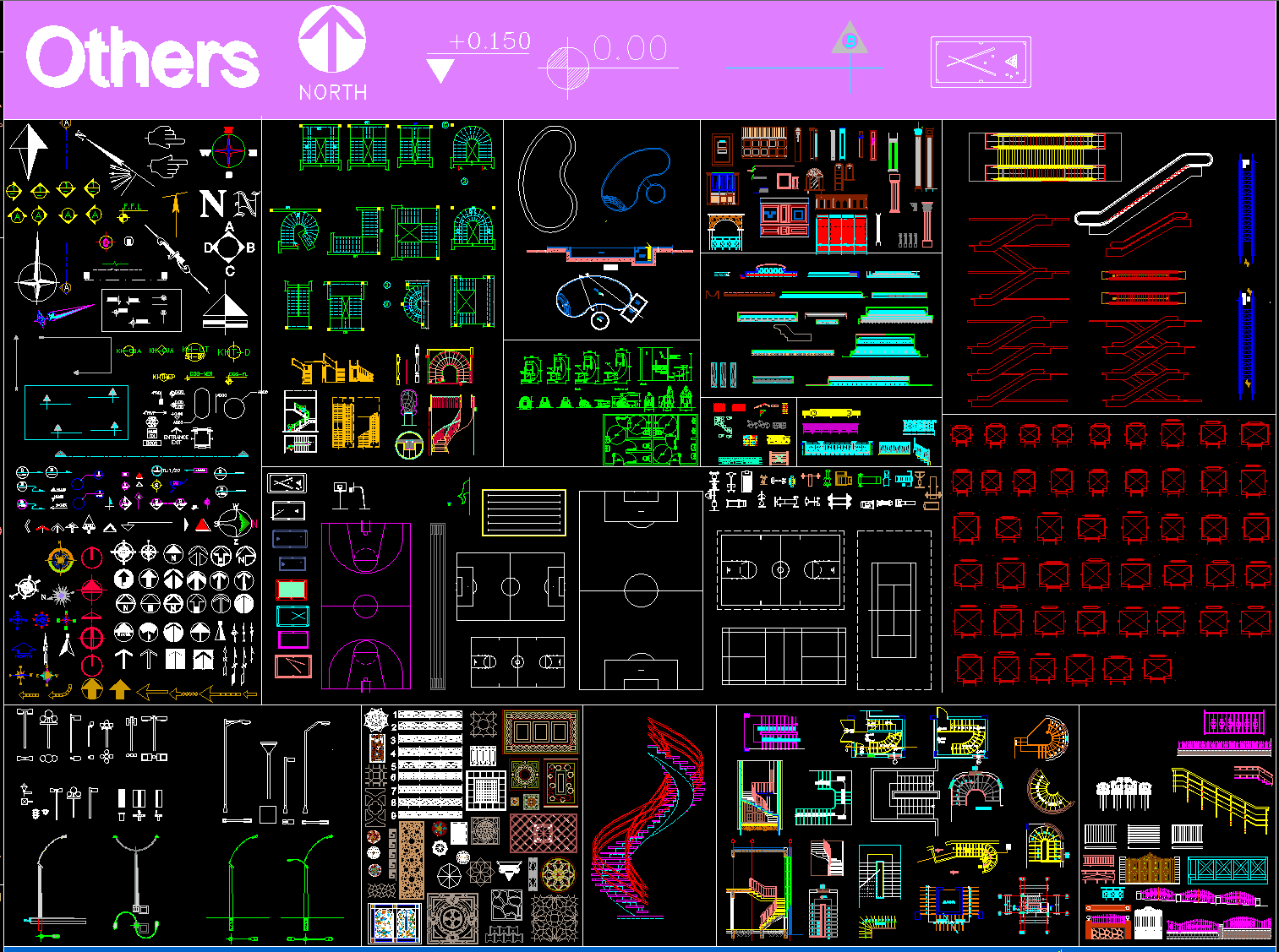 楼梯 梯柱 扶手 柱头 CAD汇总 ID:146890