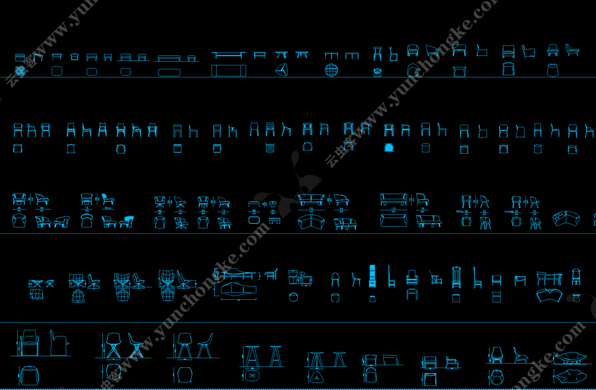 软装类家具平立面带参考图CAD图库 ID:140535