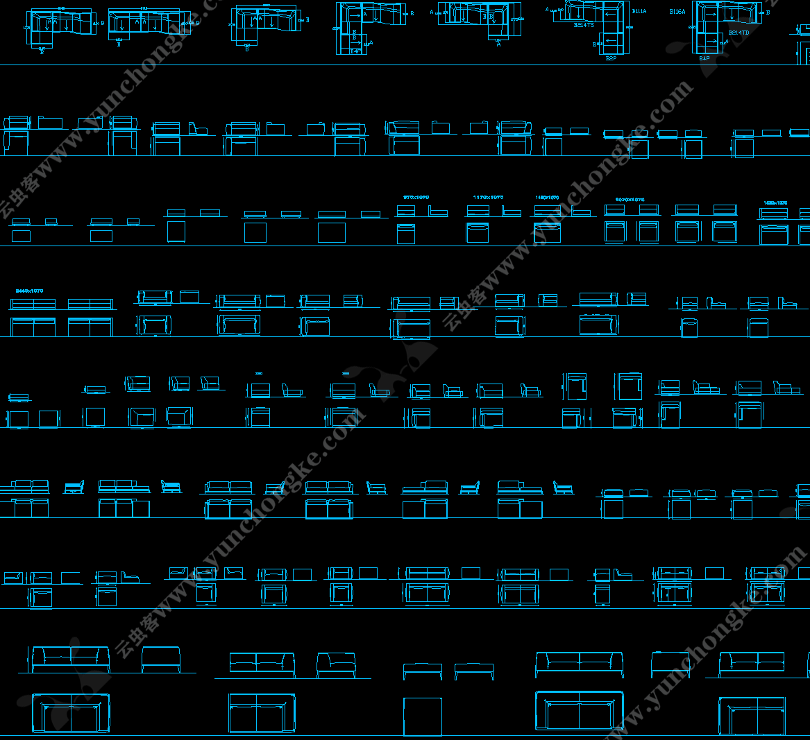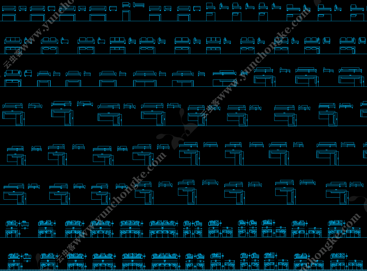 国外精整高端CAD图库丨沙发+床具+椅具+桌柜+茶几