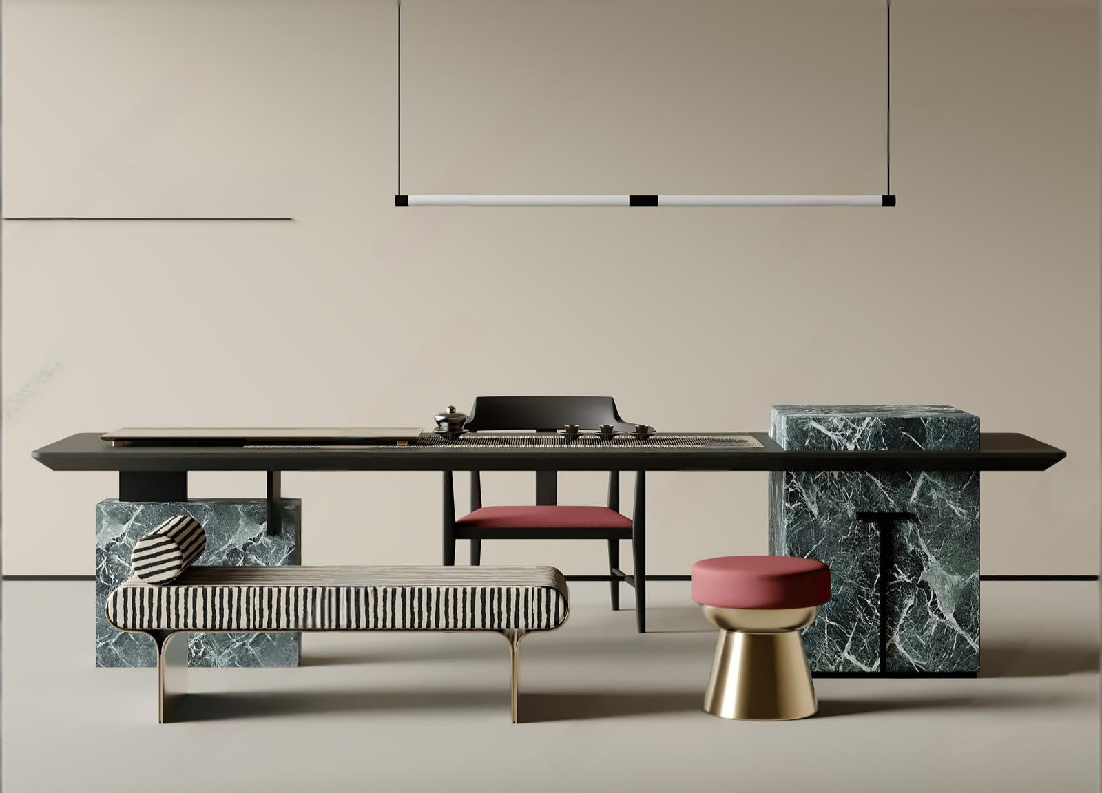 中式大理石茶桌 ID:179326