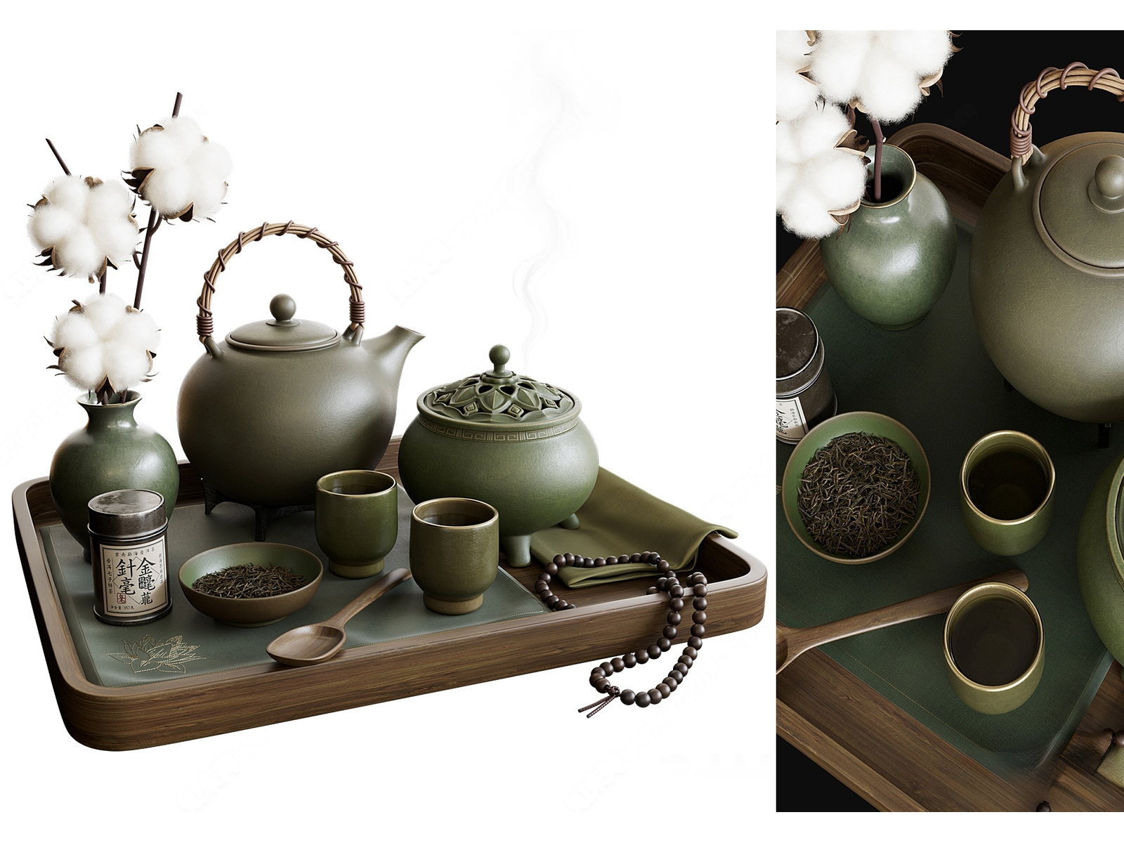 新中式茶具茶壶干花模型 ID:181668