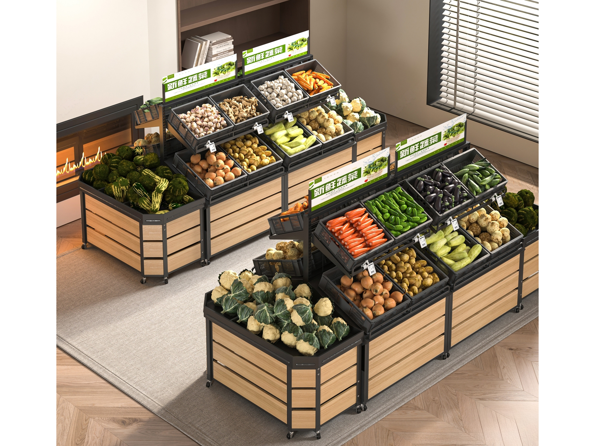 现代超市货架_水果篮