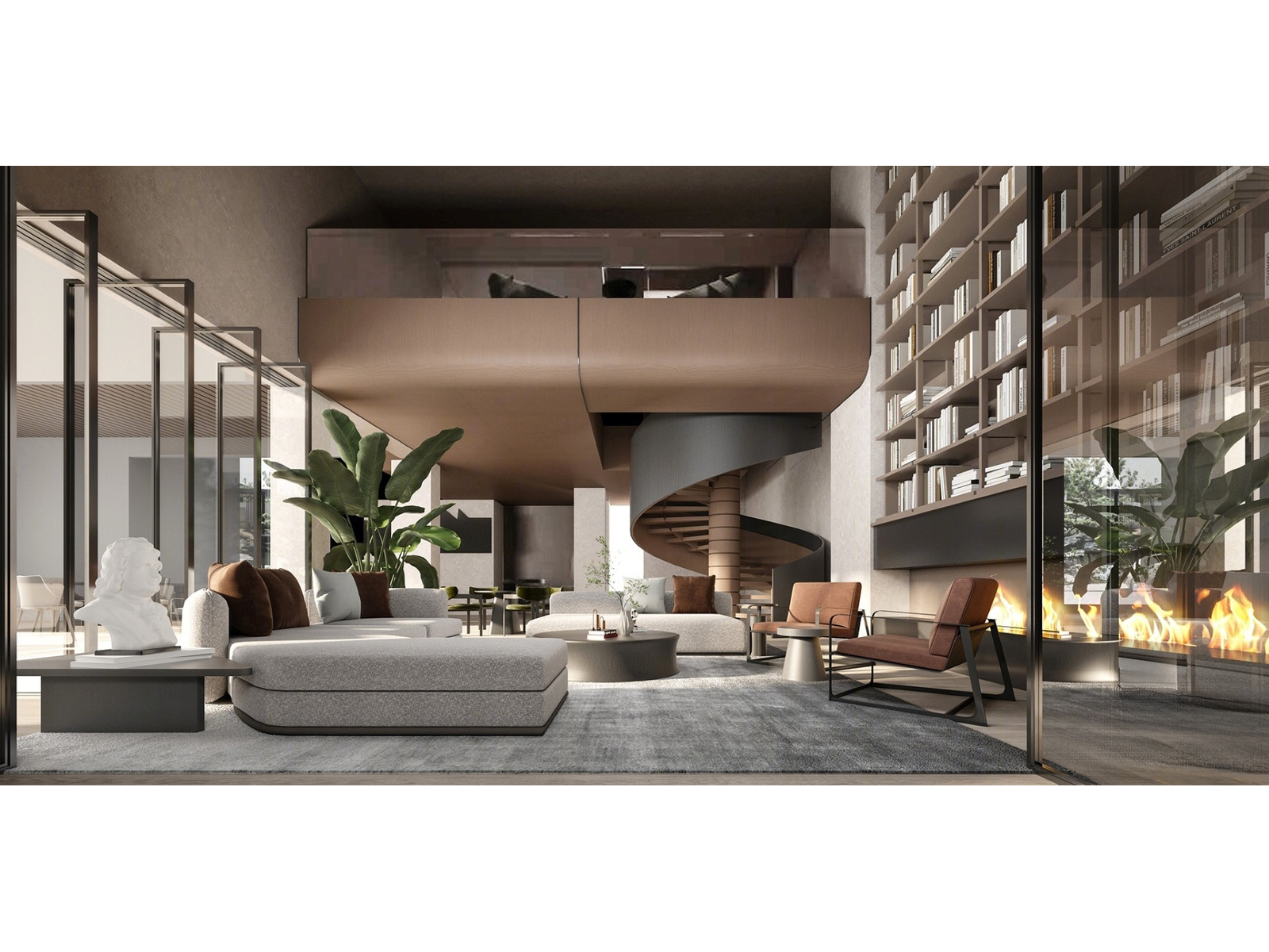 会客厅 多人沙发组合 雕塑 绿植 ID:155307