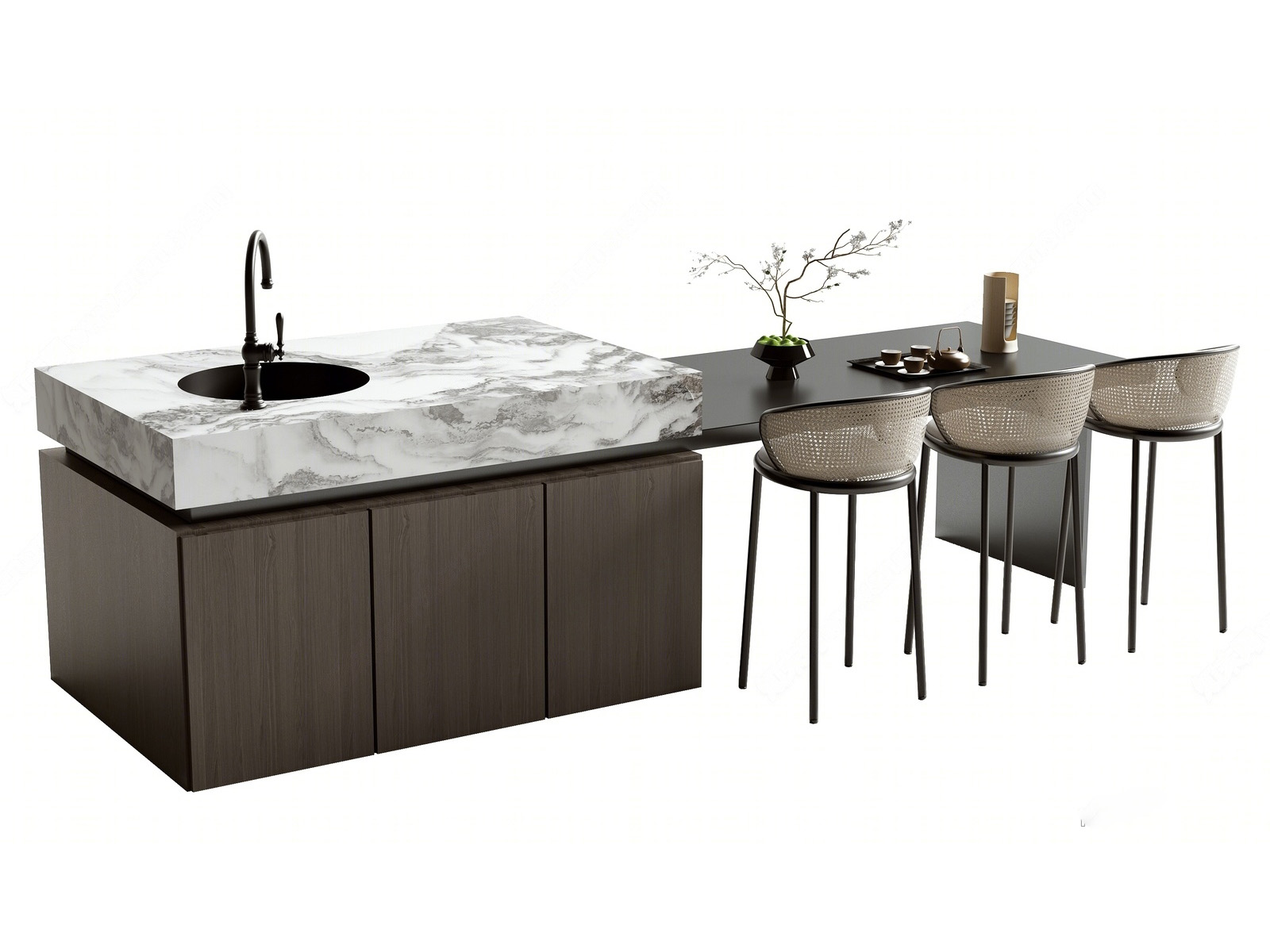 现代极简餐桌椅_大理石中岛台 ID:173049