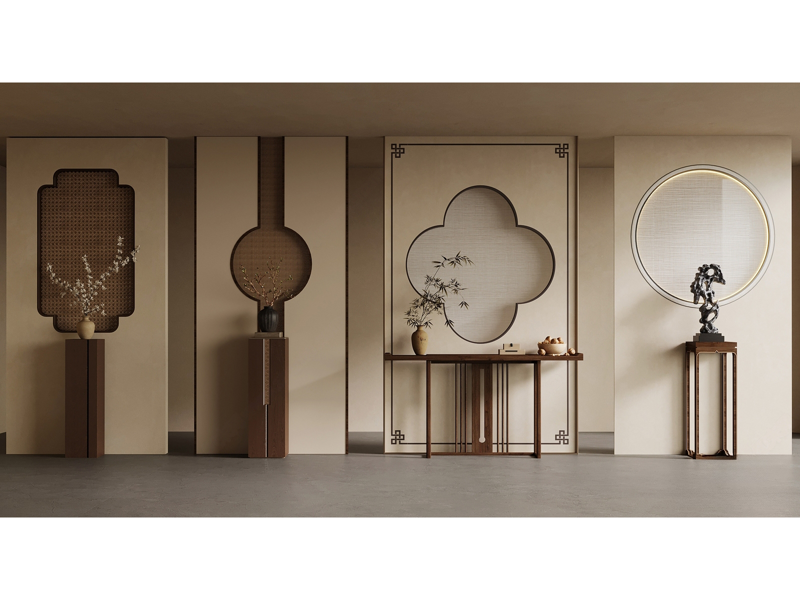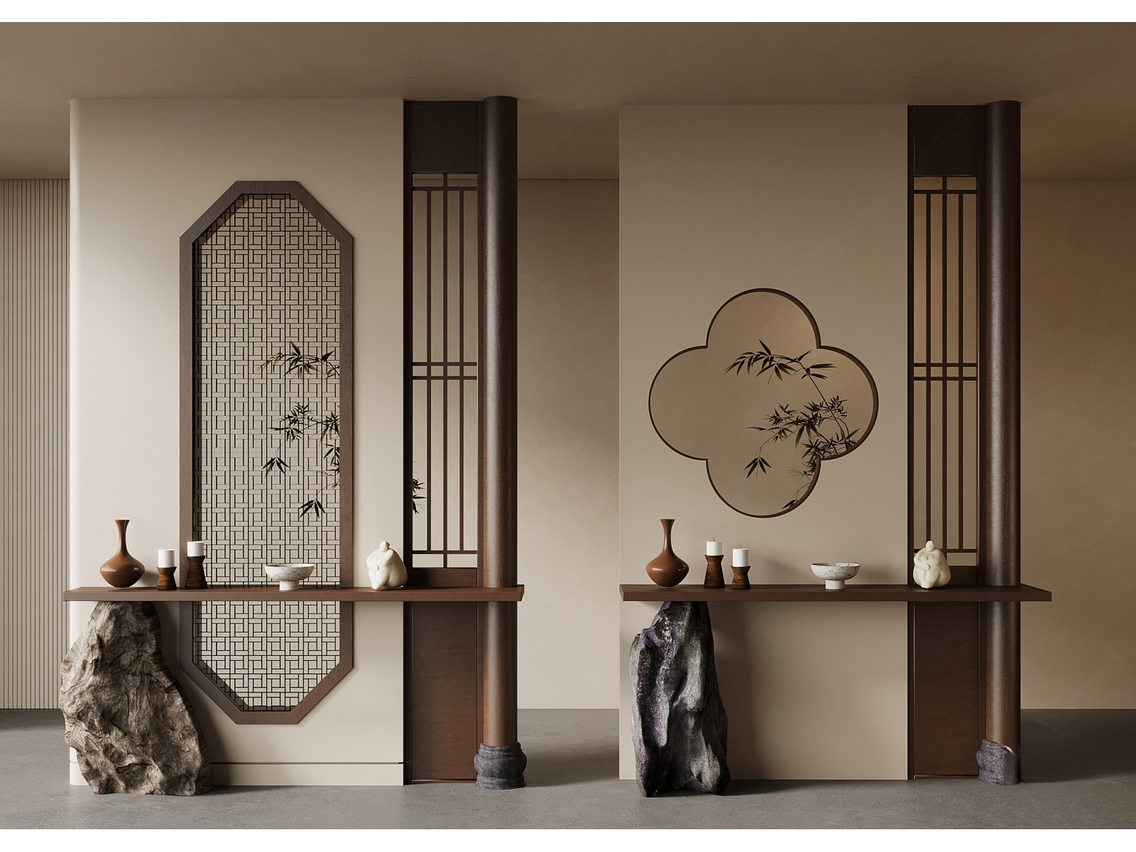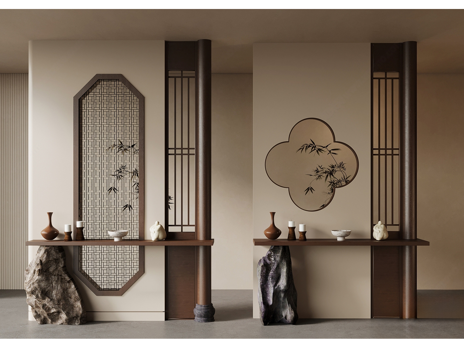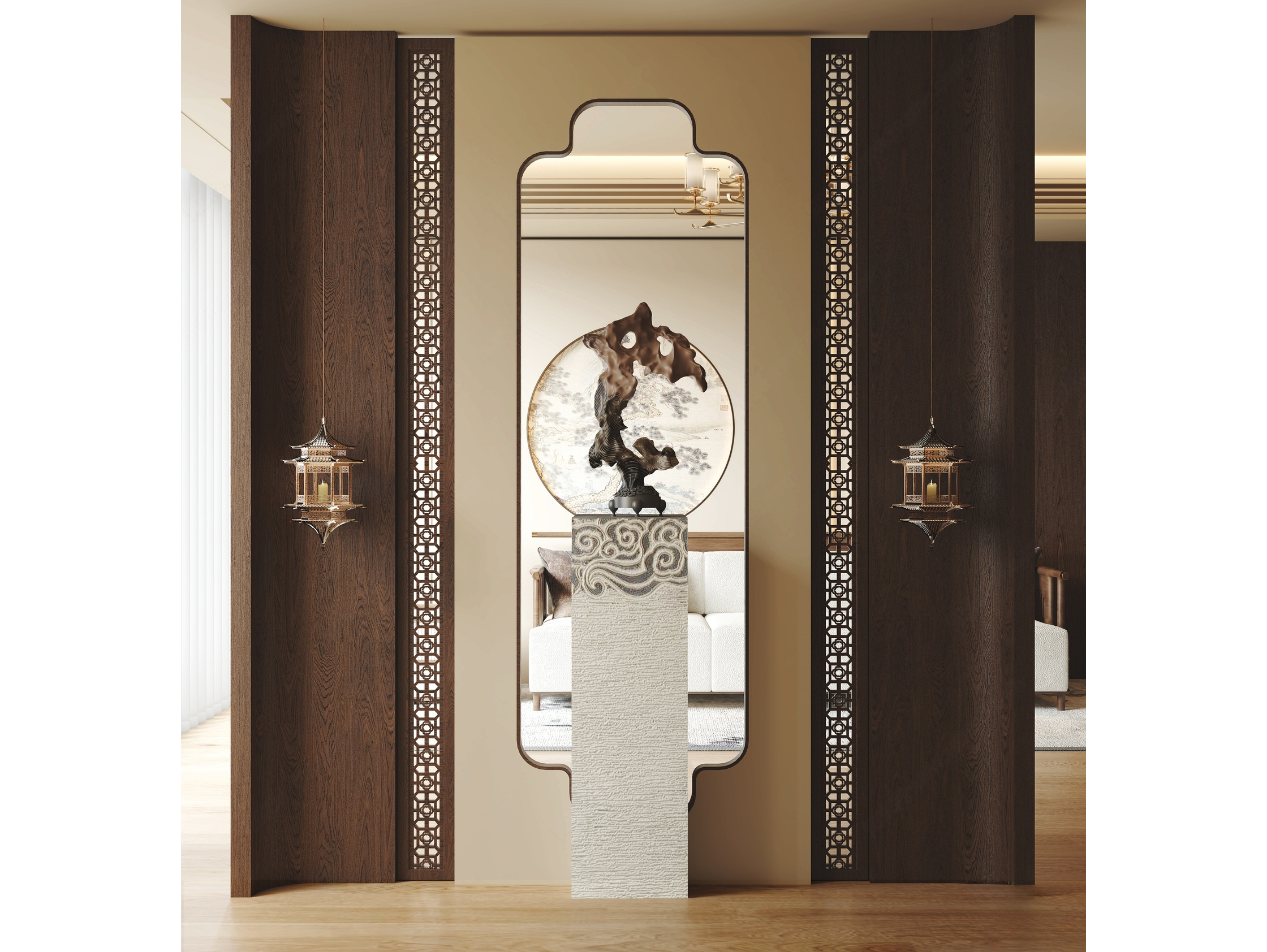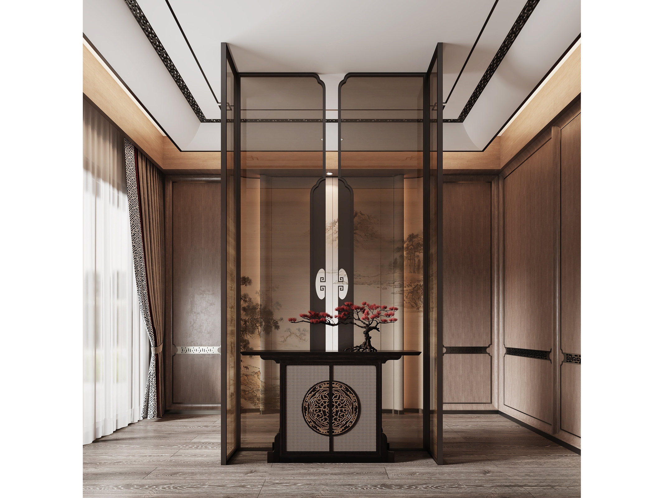 新中式禅意玄关_端景_木质隔断_栓马柱_斗柜_宋代美学 ID:169971