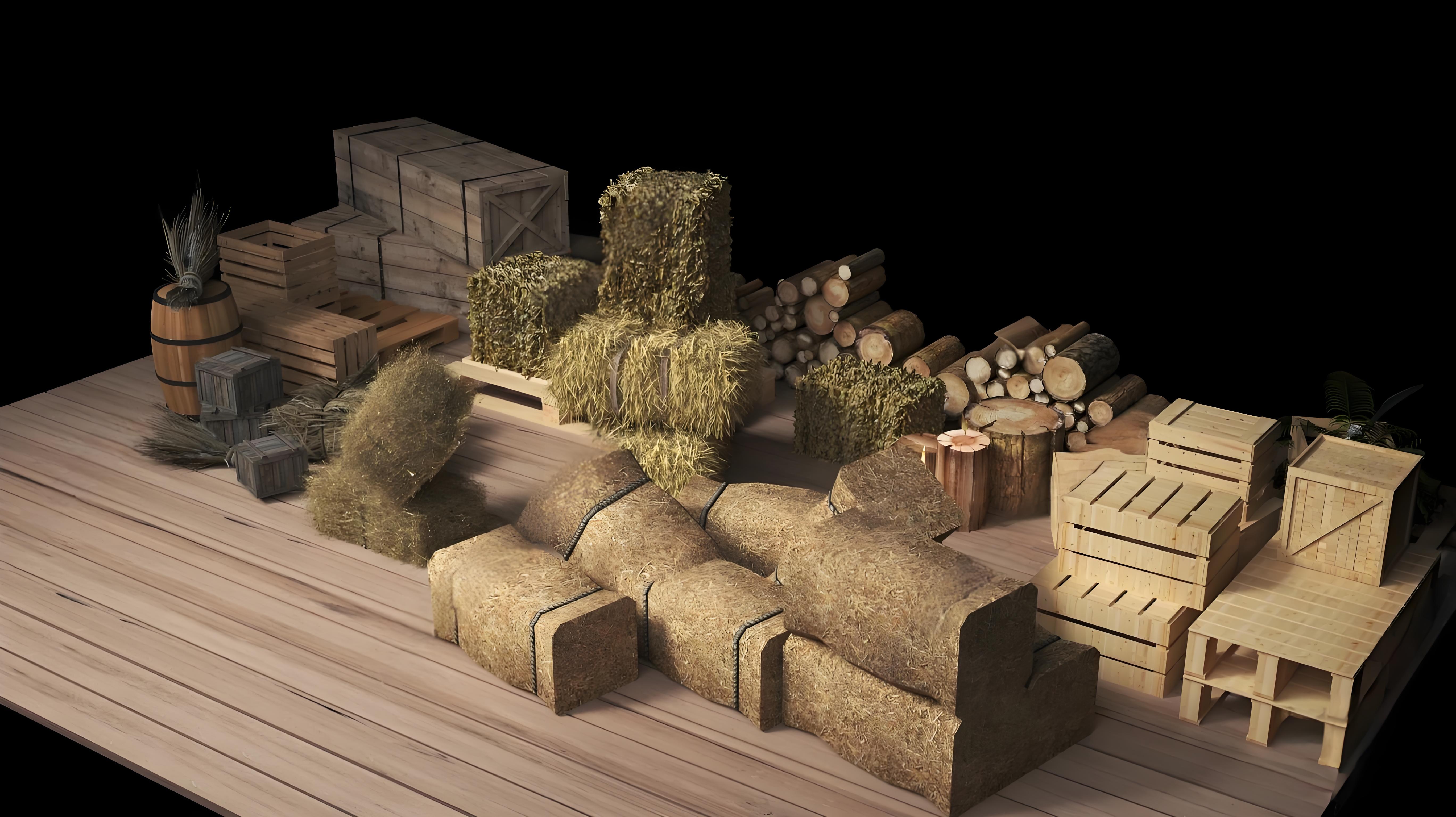 稻草 枯草 草堆木头 木板木架