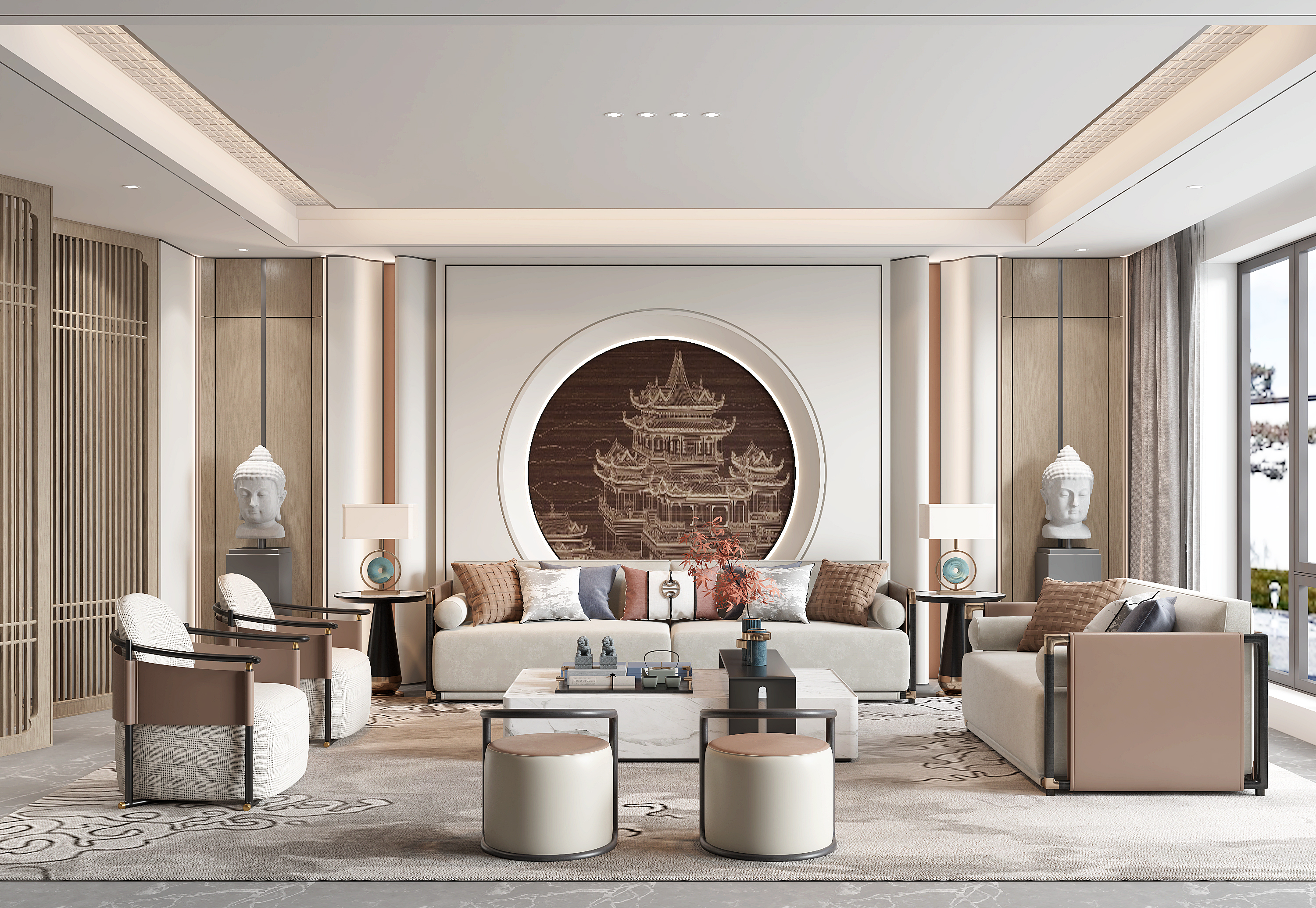 侘寂风客厅沙发组合 装饰画 屏风 ID:169951