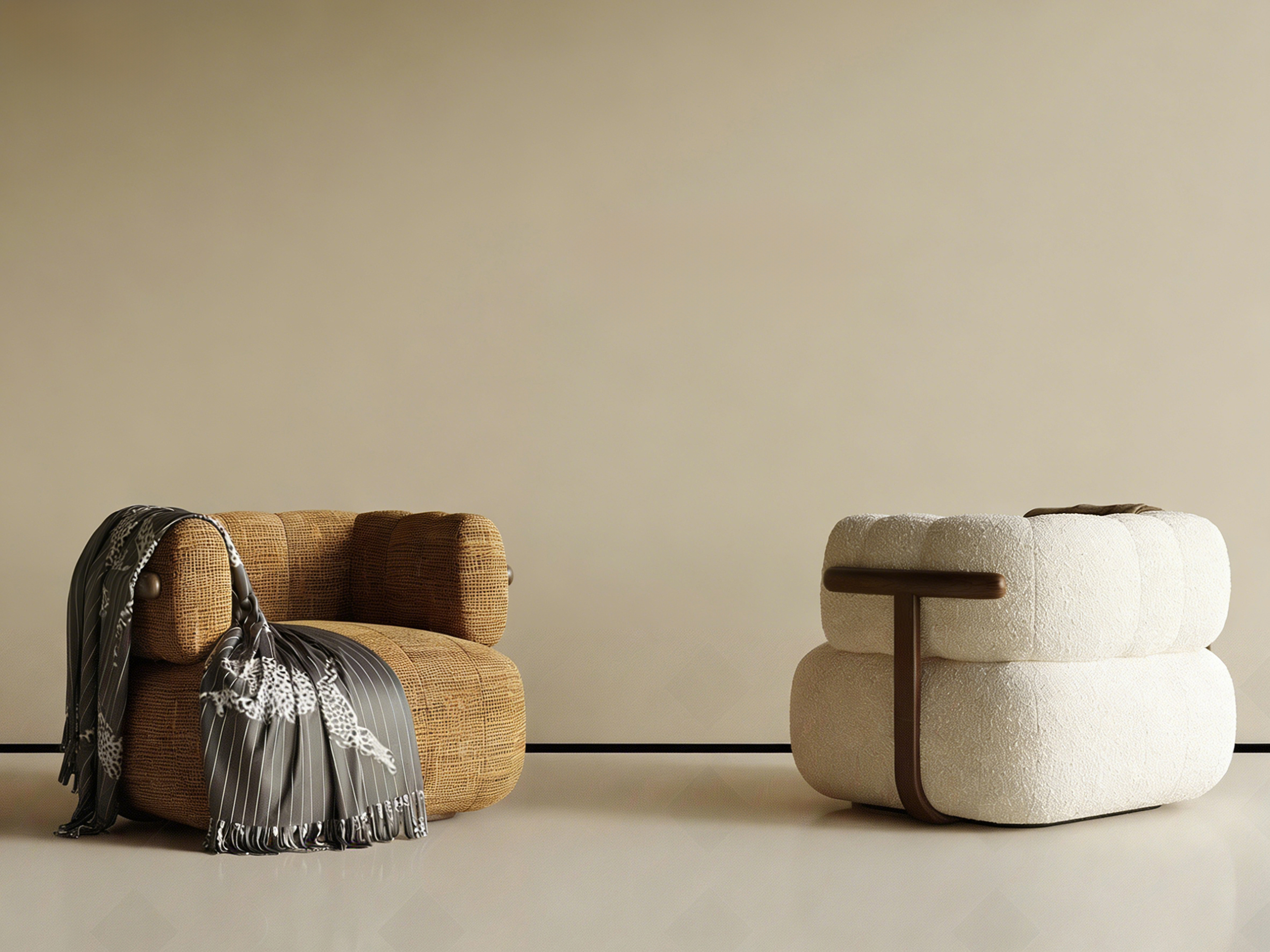 Horchow 现代羊羔绒毛单人沙发 饰品摆件 ID:189689