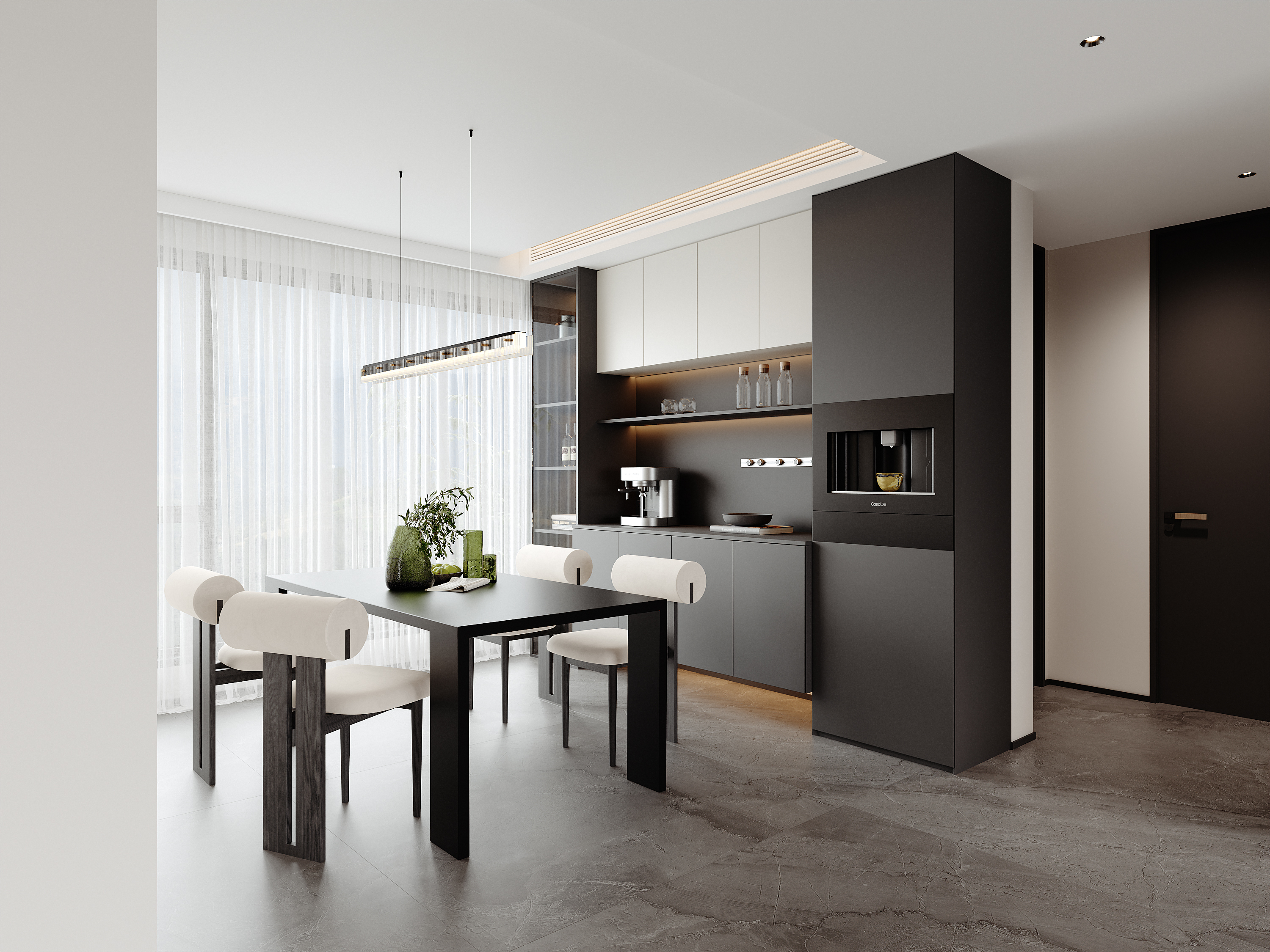 现代家居餐厅 黑白灰餐厅 开放式餐厅 ID:194090