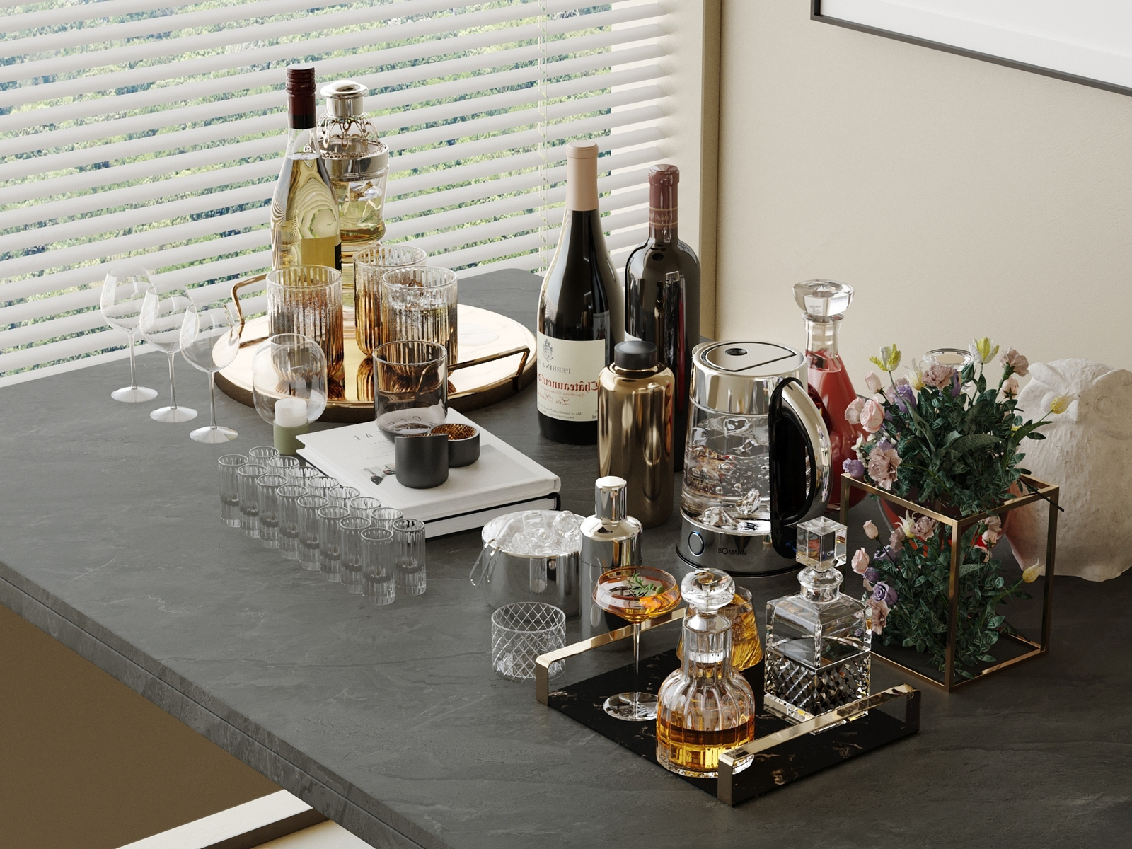 酒瓶 酒桶 水杯 酒杯 干果 餐桌摆件 ID:176433