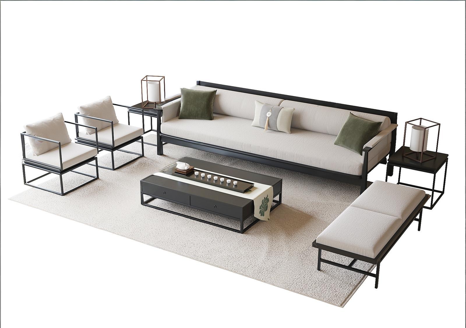 新中式沙发组合 中式沙发茶几 休闲椅 长凳 ID:191064