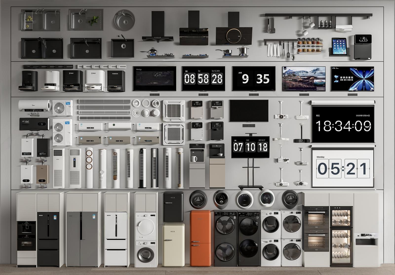 家用电器组合 冰箱 电视机 空调 洗衣机 热水器 扫地机器人 水槽 ID:191288