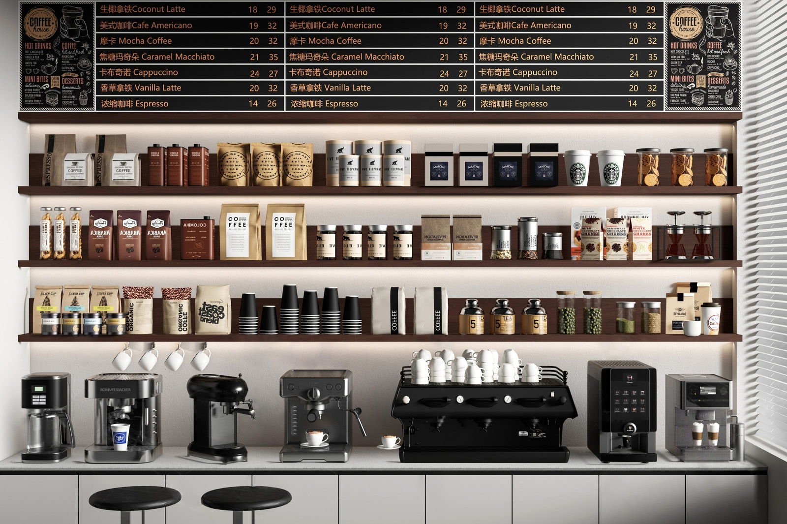 现代奶茶甜品店吧台操作台